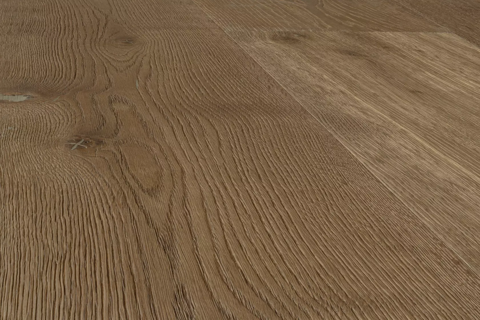A warm, mid-brown European Oak with lighter striations and increased colour variation, Vermeer pairs an enhanced grain with a deeply brushed texture in a wide plank.