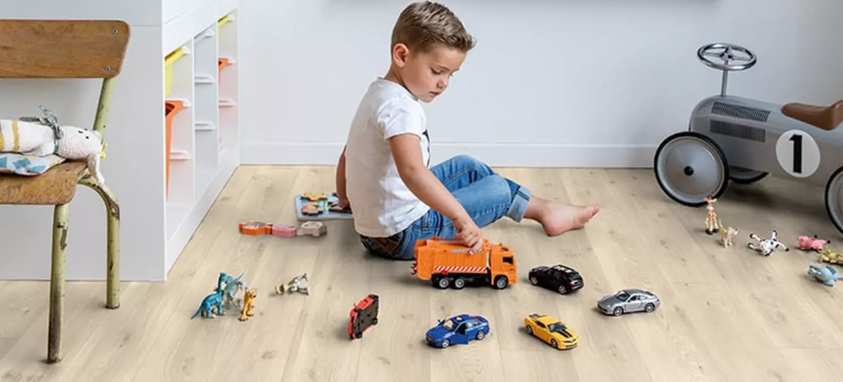 Engineered wood is an ideal option for kid-friendly flooring as its not only more durable and hygienic but easer to clean when compared with other flooring types such as carpet.