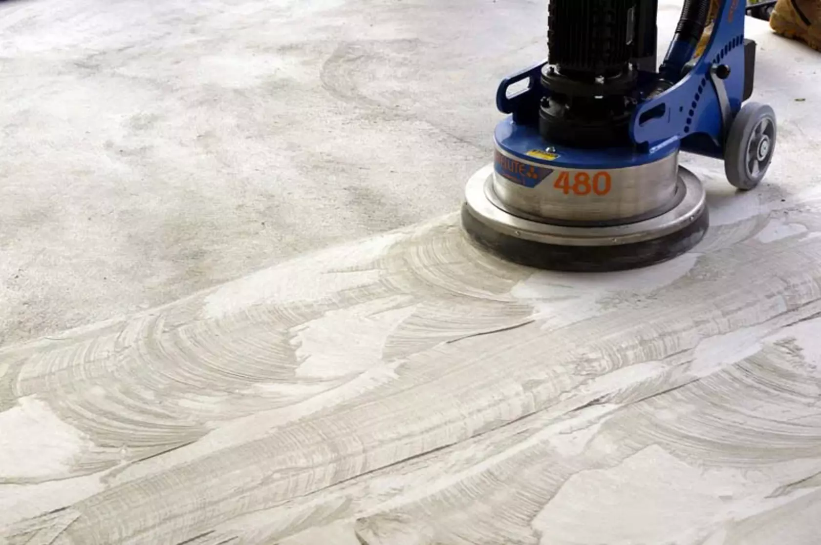 Polished concrete floors are installed by grinding a concrete slab multiple times with progressively finer diamond grinding tools. The first several steps are called 'cutting' and utilize aggressive grinding tools to remove imperfections and flatten the floor's surface.