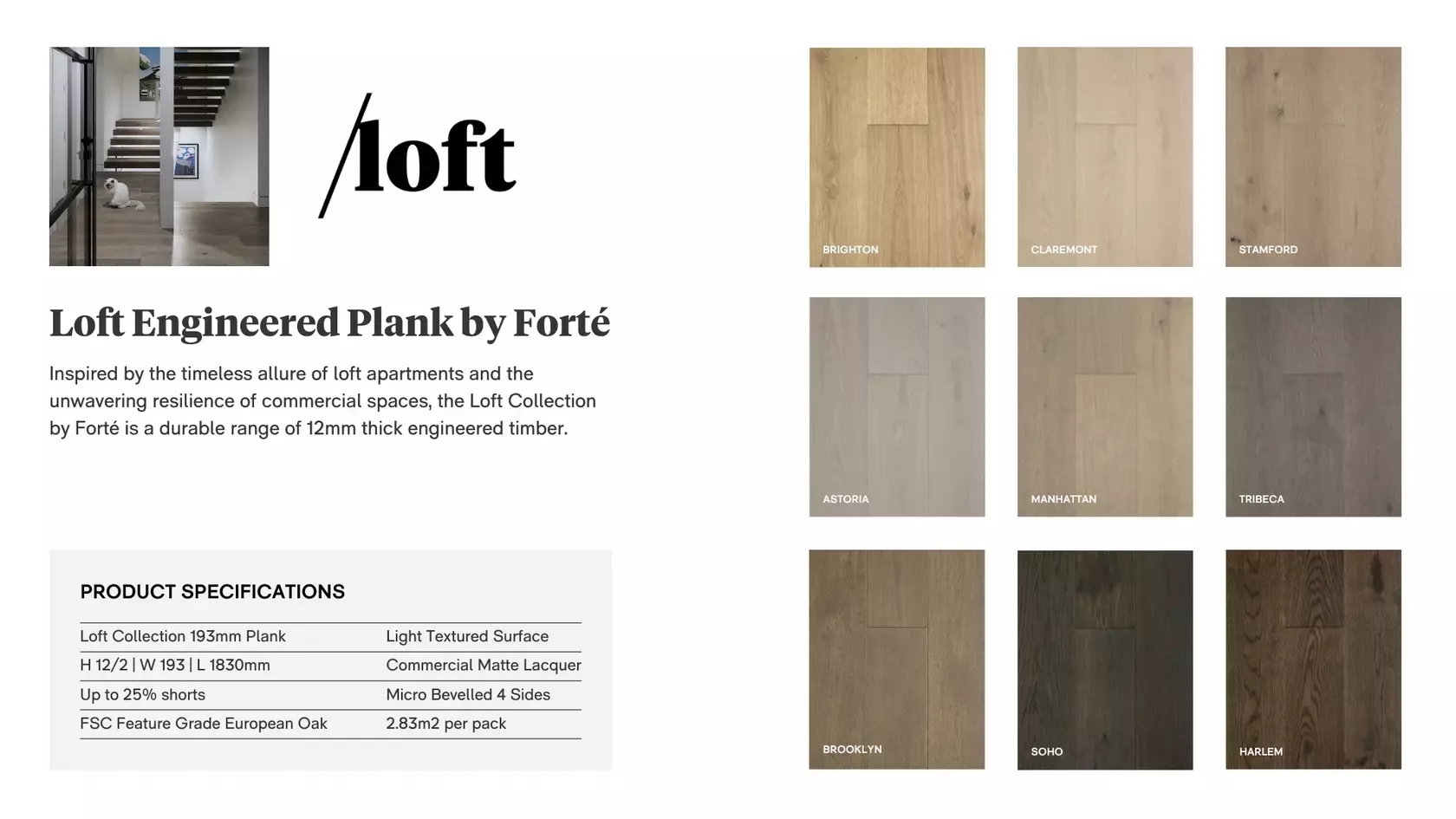 Loft is a natural, affordable and exceptionally durable timber flooring product, specially designed to cater to the needs of multi-residential, retail, hospitality and other commercial projects, as well as residential projects with high foot traffic.