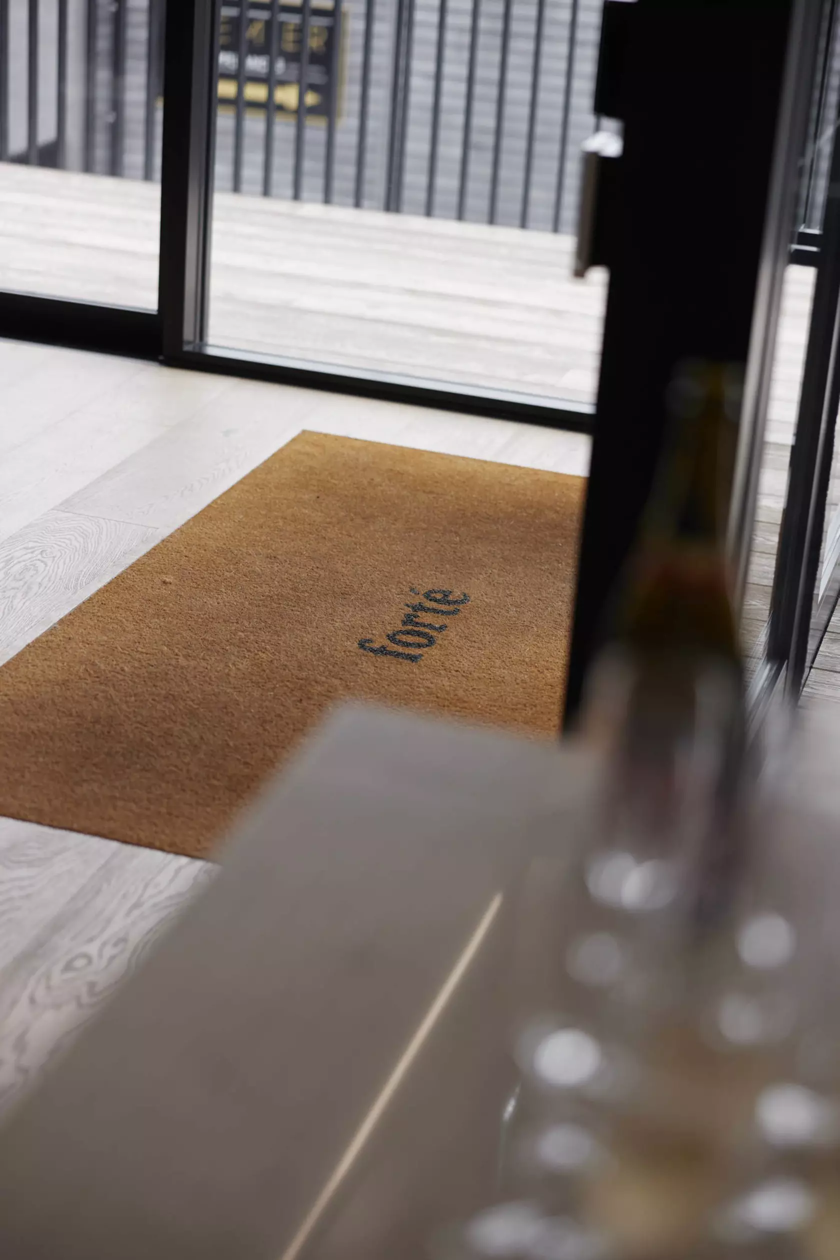 The exterior mat sits outside your door with a coarse, aggressive texture designed to scrape mud, dirt and debris from shoe soles before anyone steps inside.
