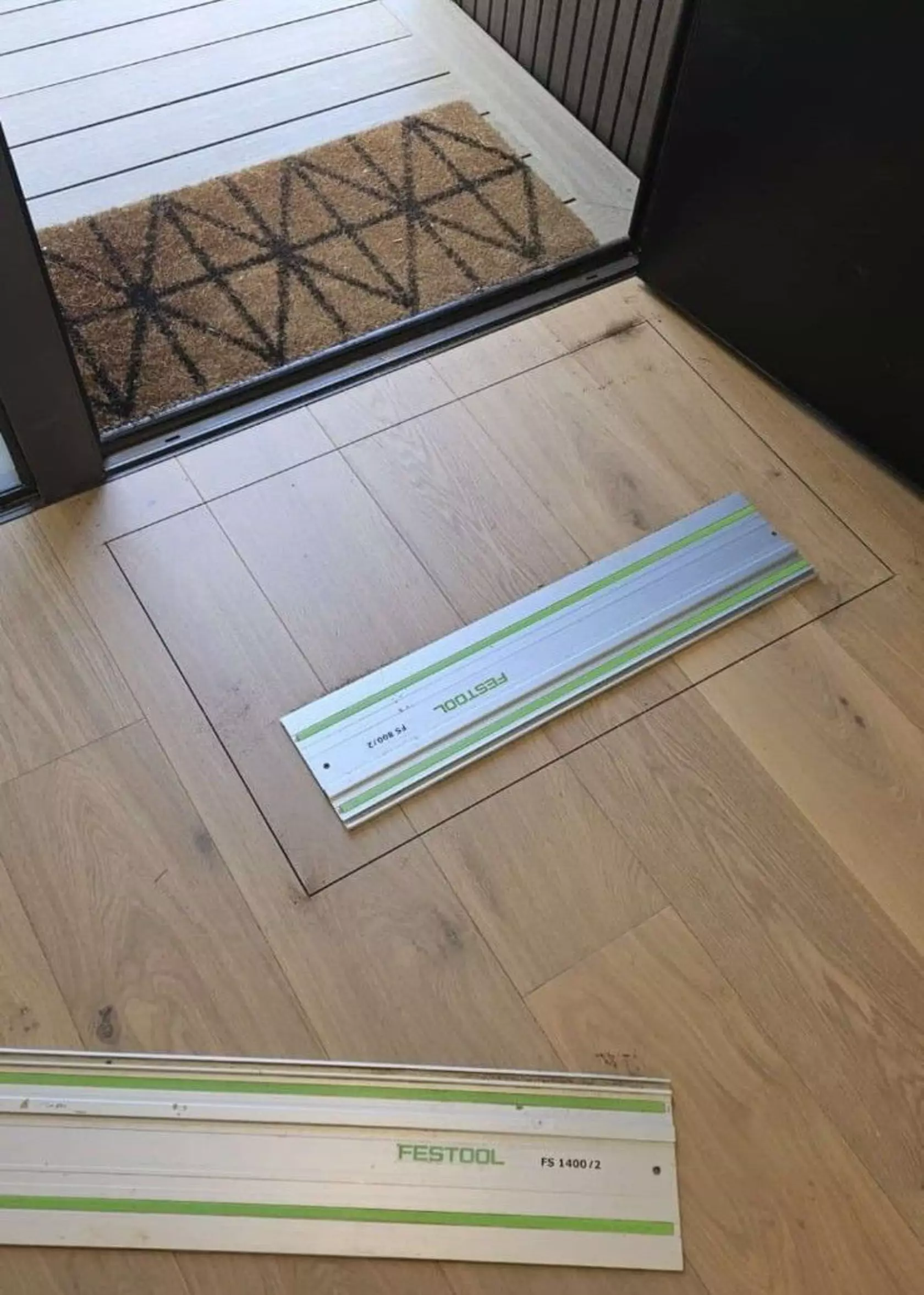 The installer will need to create a precise cutout in the timber flooring at your designated mat location. This cutout should match your mat dimensions exactly, with perhaps 1-2mm tolerance around the perimeter for the finishing trim.