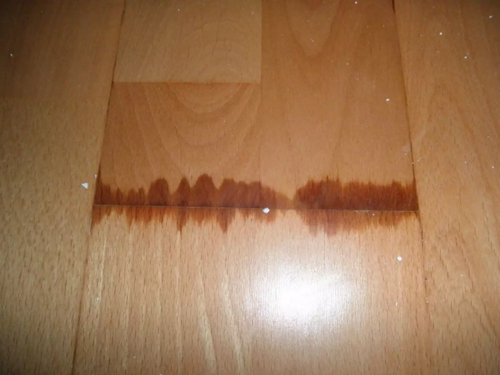 Water is seeping through the seams of the boards and pooling on the surface of the floor