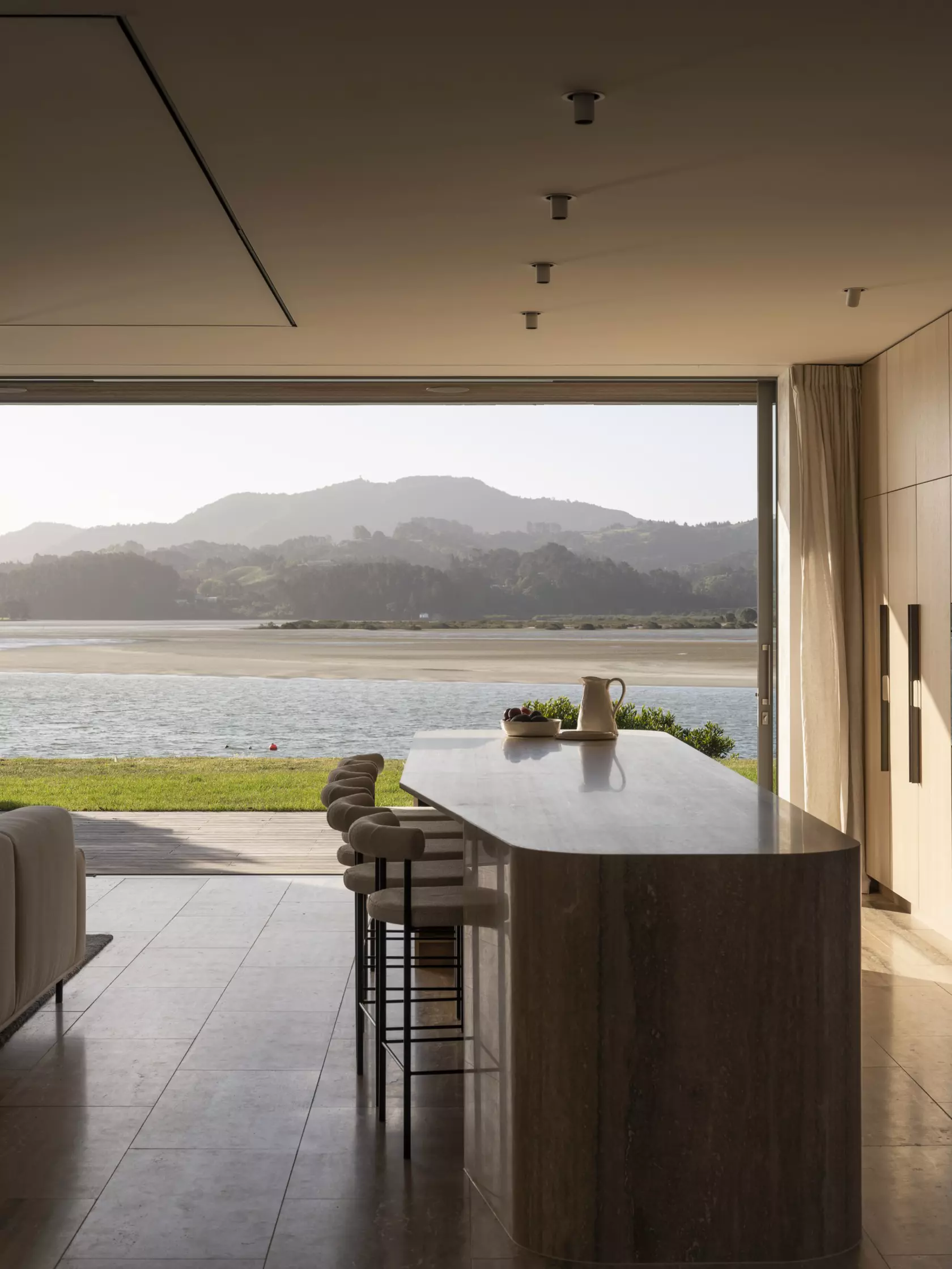 Set on a bush-clad site cascading to the water’s edge, this serene home is a modern retreat that embraces its coastal outlook while remaining firmly connected to community roots.