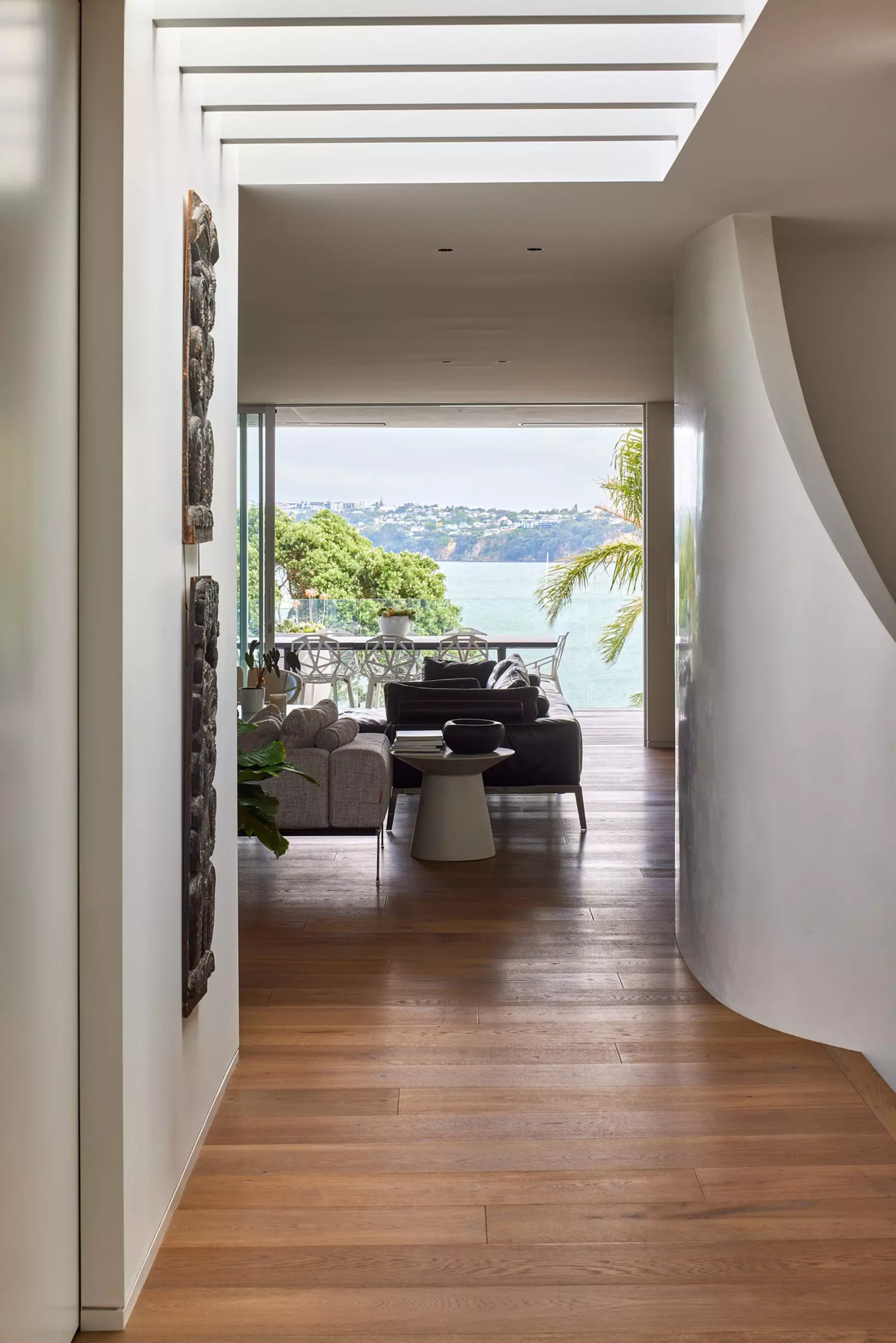 Set on a bush-clad site cascading to the water’s edge, this serene home is a modern retreat that embraces its coastal outlook while remaining firmly connected to community roots.