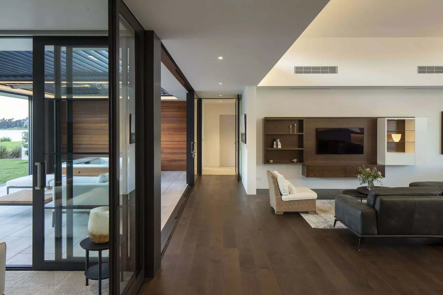 Set on a bush-clad site cascading to the water’s edge, this serene home is a modern retreat that embraces its coastal outlook while remaining firmly connected to community roots.