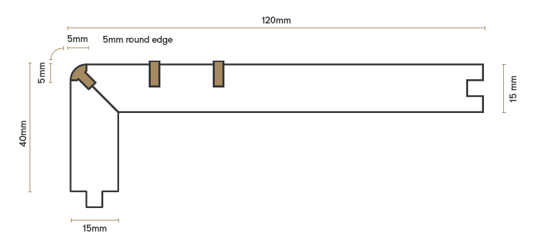 Edge style: 5mm quarter rounded with tee insert