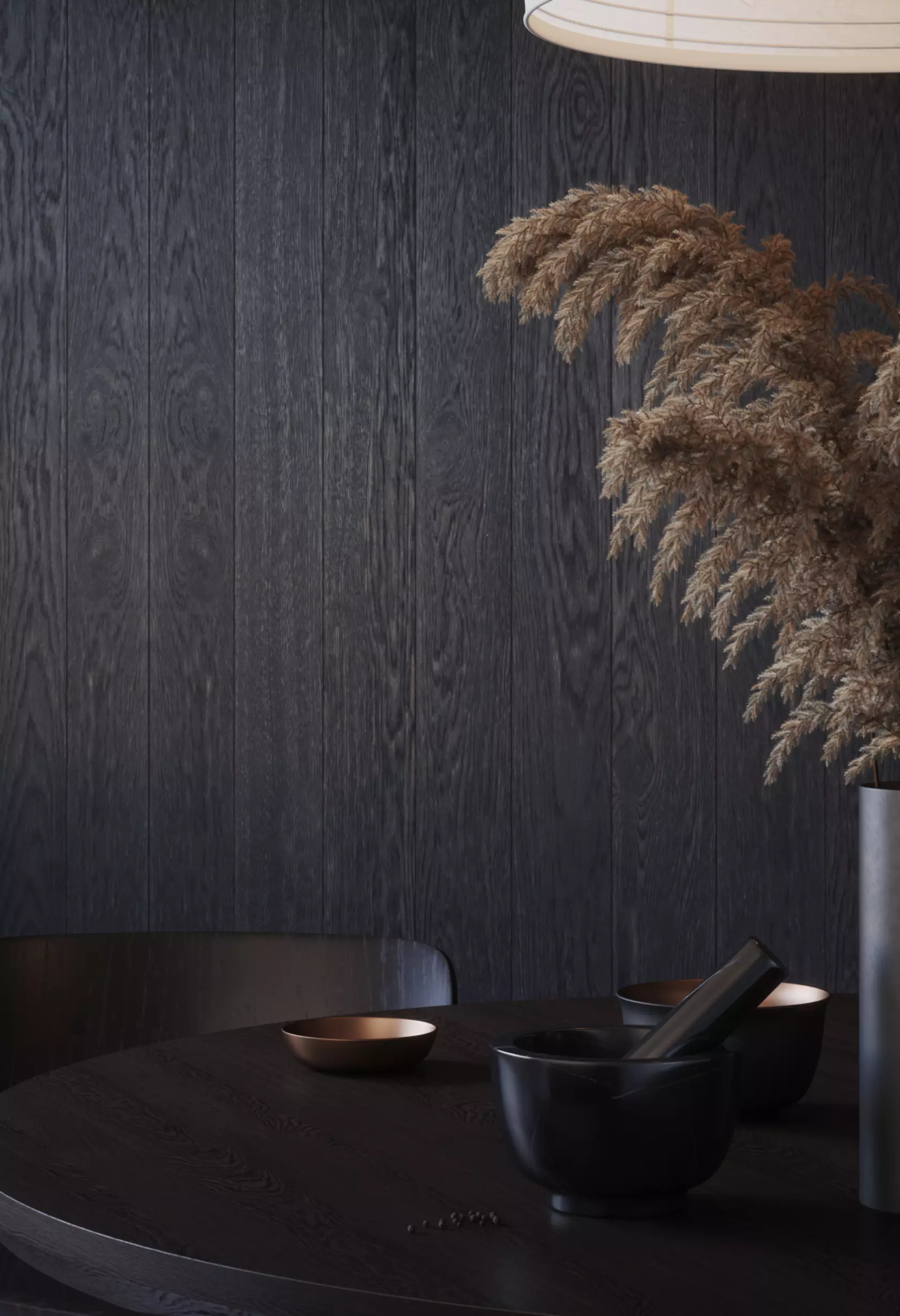 With its dark, sumptuous tones, Noir evokes the rich pigments of traditional Spanish frescoes. This prime-grade timber combines bold beauty with refined elegance, creating interiors that feel intimate, dramatic, and daring. Perfect for those seeking a striking, sophisticated statement in their space.