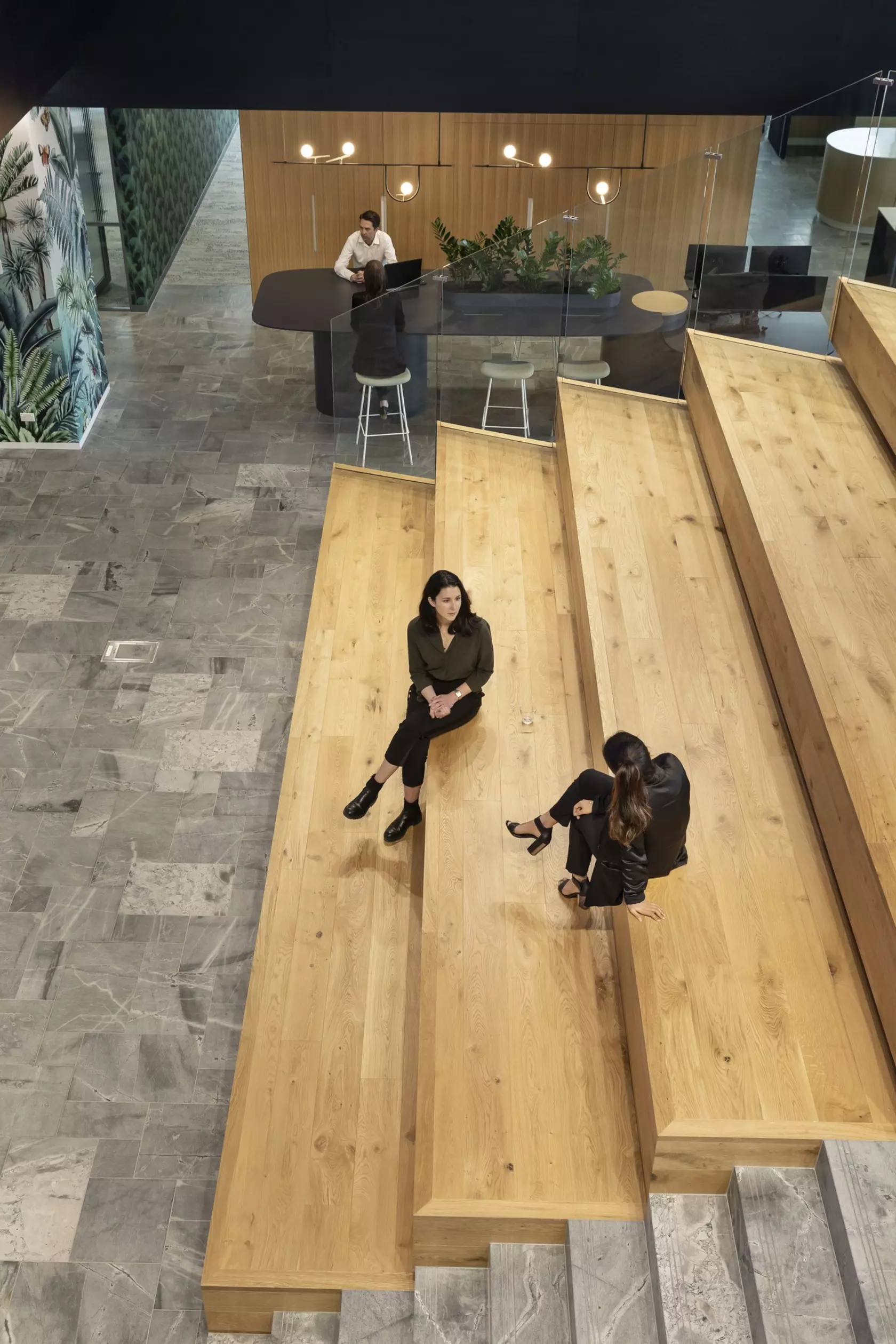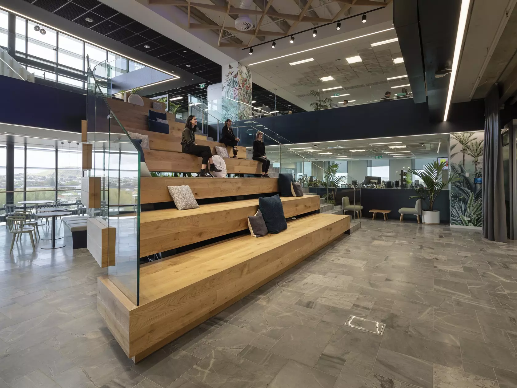 ANZ Sylvia Park, completed in 2019, is a five-and-a-half-level workplace designed around three principles: connection, community, and flexibility. Warren and Mahoney worked closely with ANZ to translate brand values into built form, where every detail—from the joinery to the materiality—was meticulously considered. Forté's Ultra Bordeaux Oak flooring grounds the interior with warmth and refinement, its rich tone complementing the detailed fitout that staff described as genuinely moving. For regional banking staff, it's a workspace that prioritises people, not just productivity.