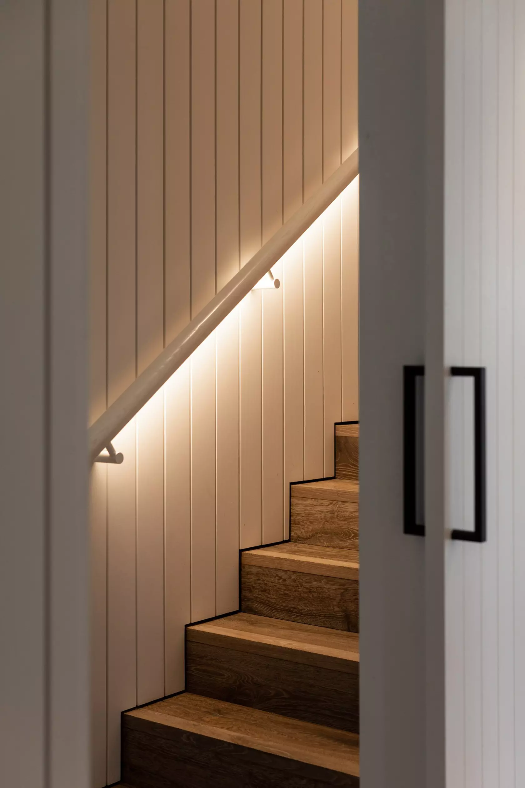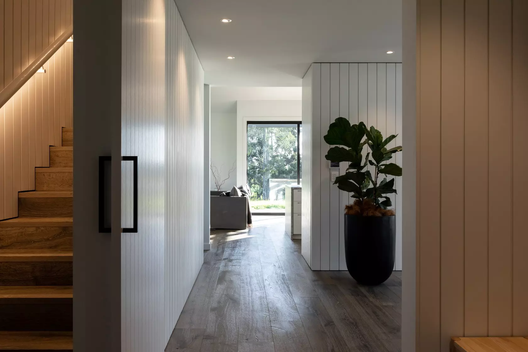 Adding to the calming interior aesthetic, Forté’s Manor Cobble Stone (suggested alternative Artiste Rustic Van Gogh) engineered Oak flooring has been laid throughout the living areas and staircase. The neutral tones, which accentuate the grain of the timber, provide the perfect foundation to the quietness of the home.