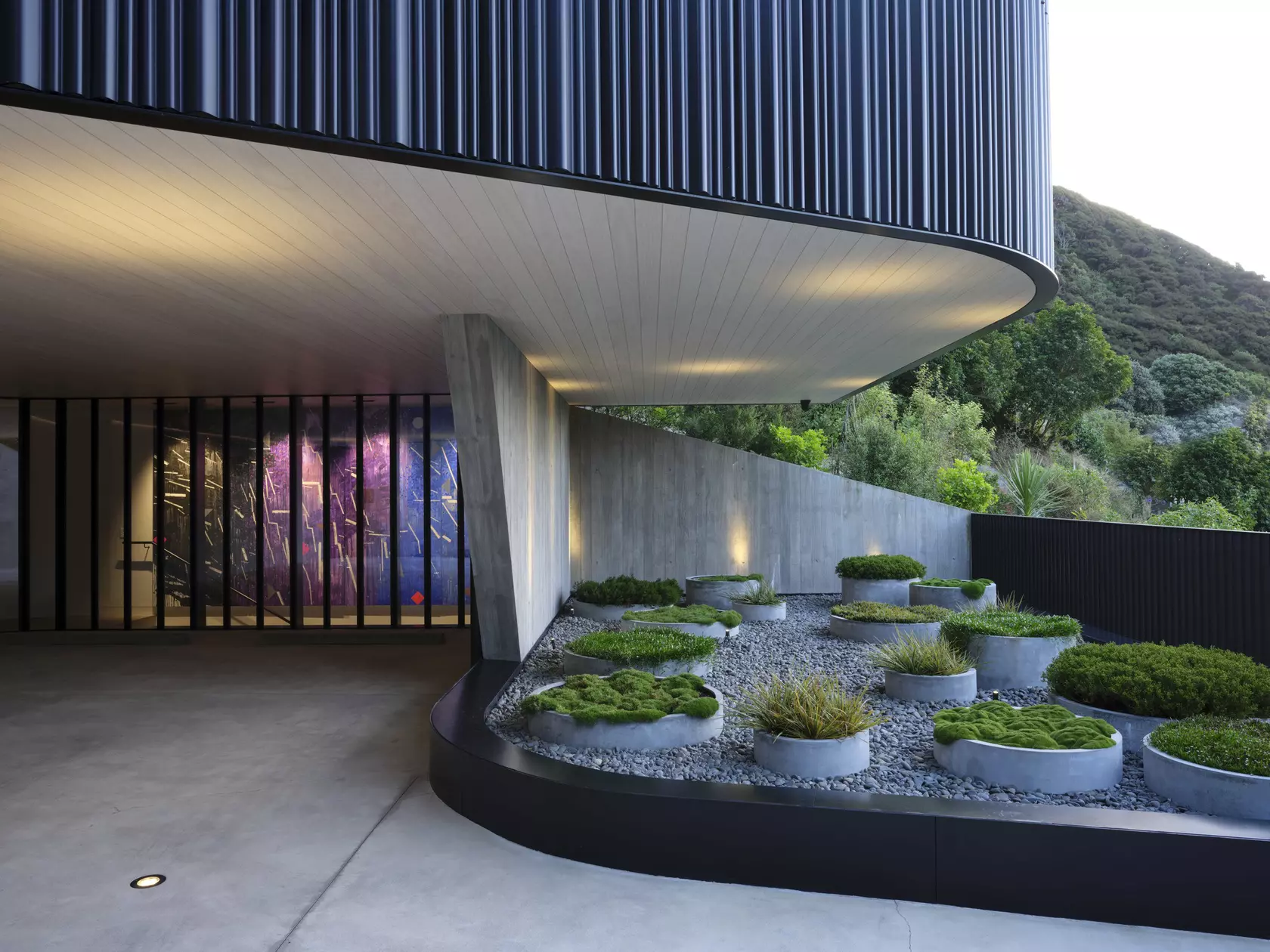From the outside, Eastbourne House presents a monolithic form defined by glazed terracotta tiles, black aluminium and subtle, curved steel accents. These materials not only enhance the home's visual appeal but also fortify it against Wellington's unpredictable weather—a crucial consideration in the brief for this unique project.