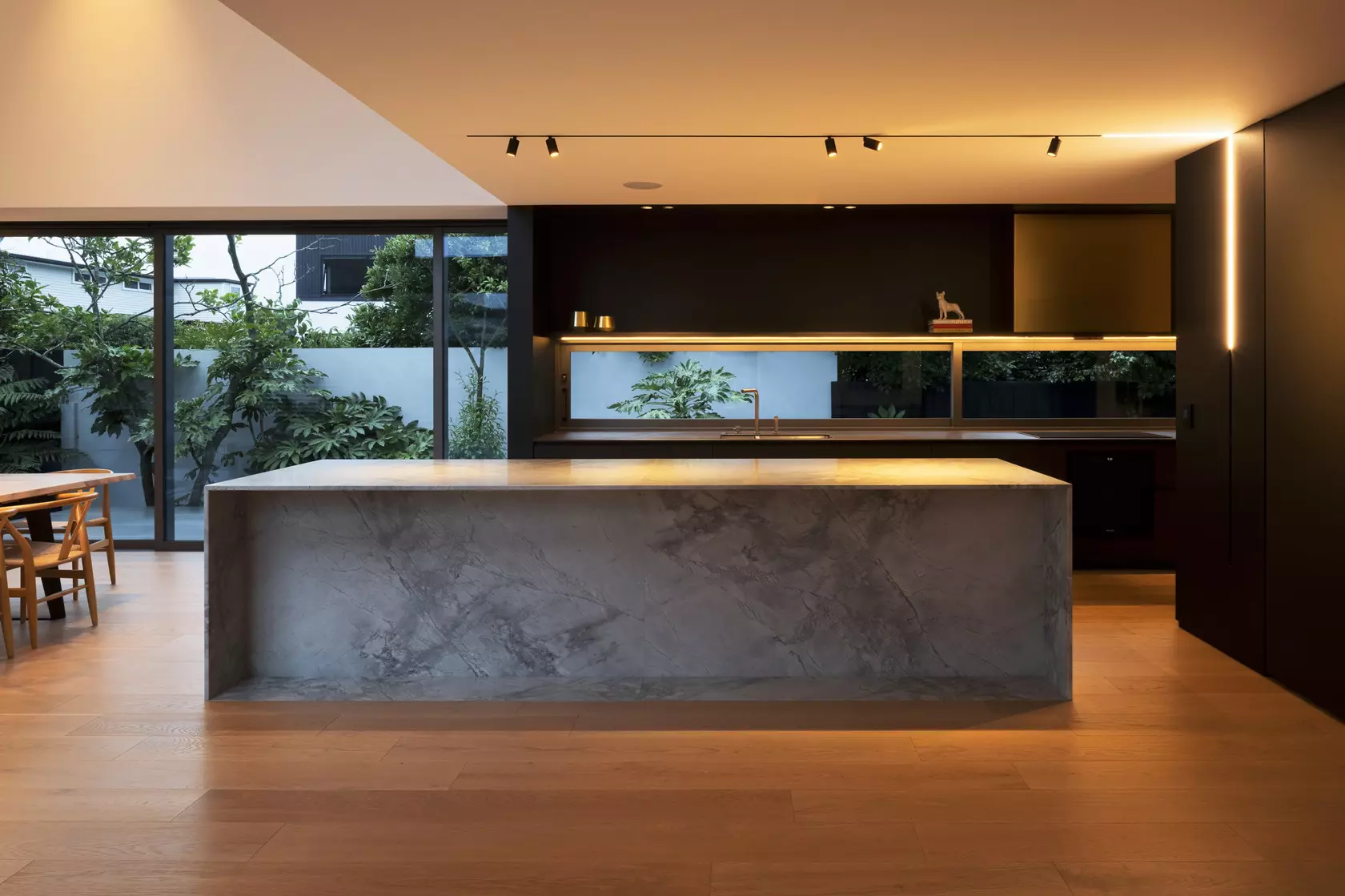 The kitchen is at the centre of this home and, together with large picture windows, slide-away doors and external terraces that provide exceptional views of the garden and lawns, is considered a highly social home.