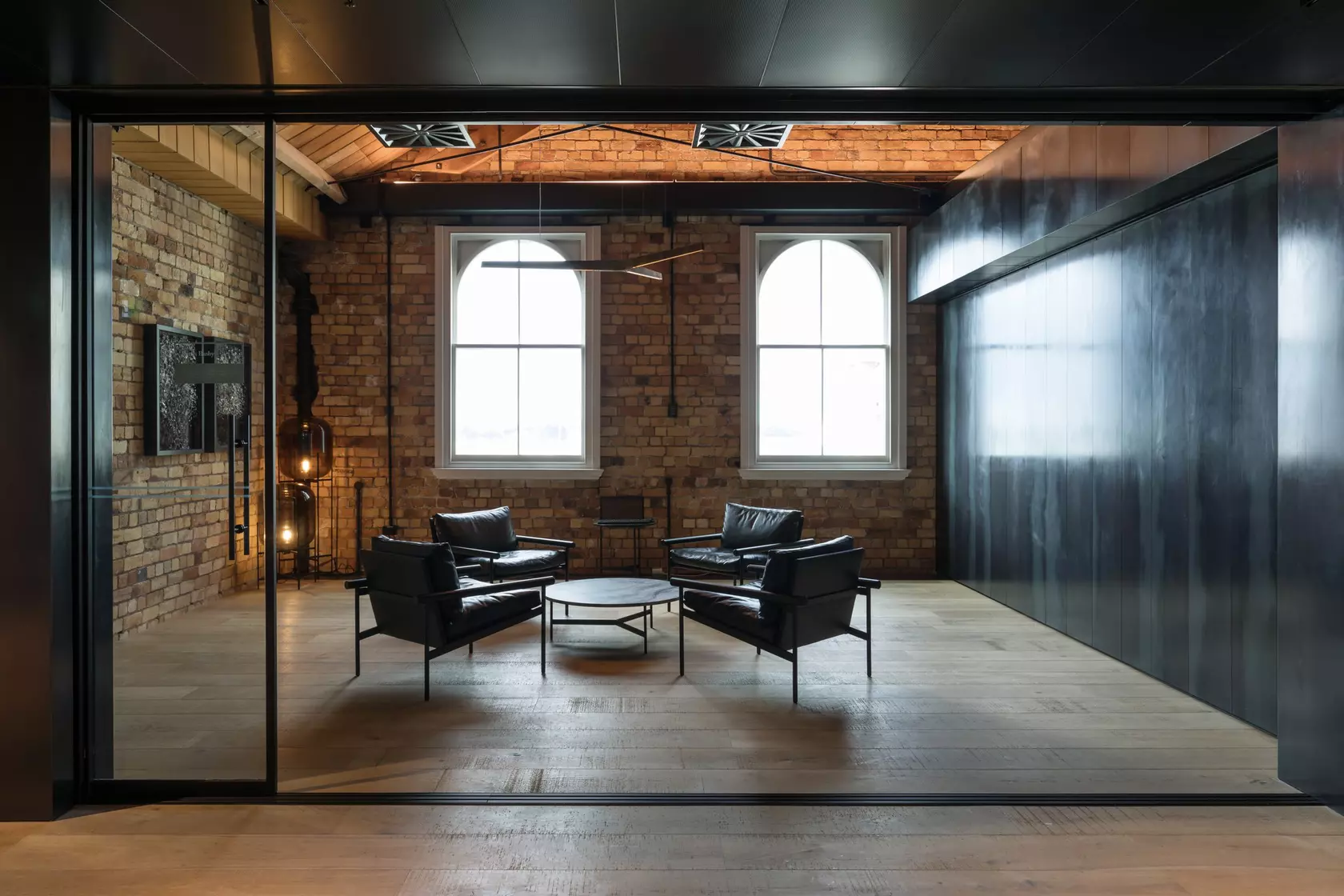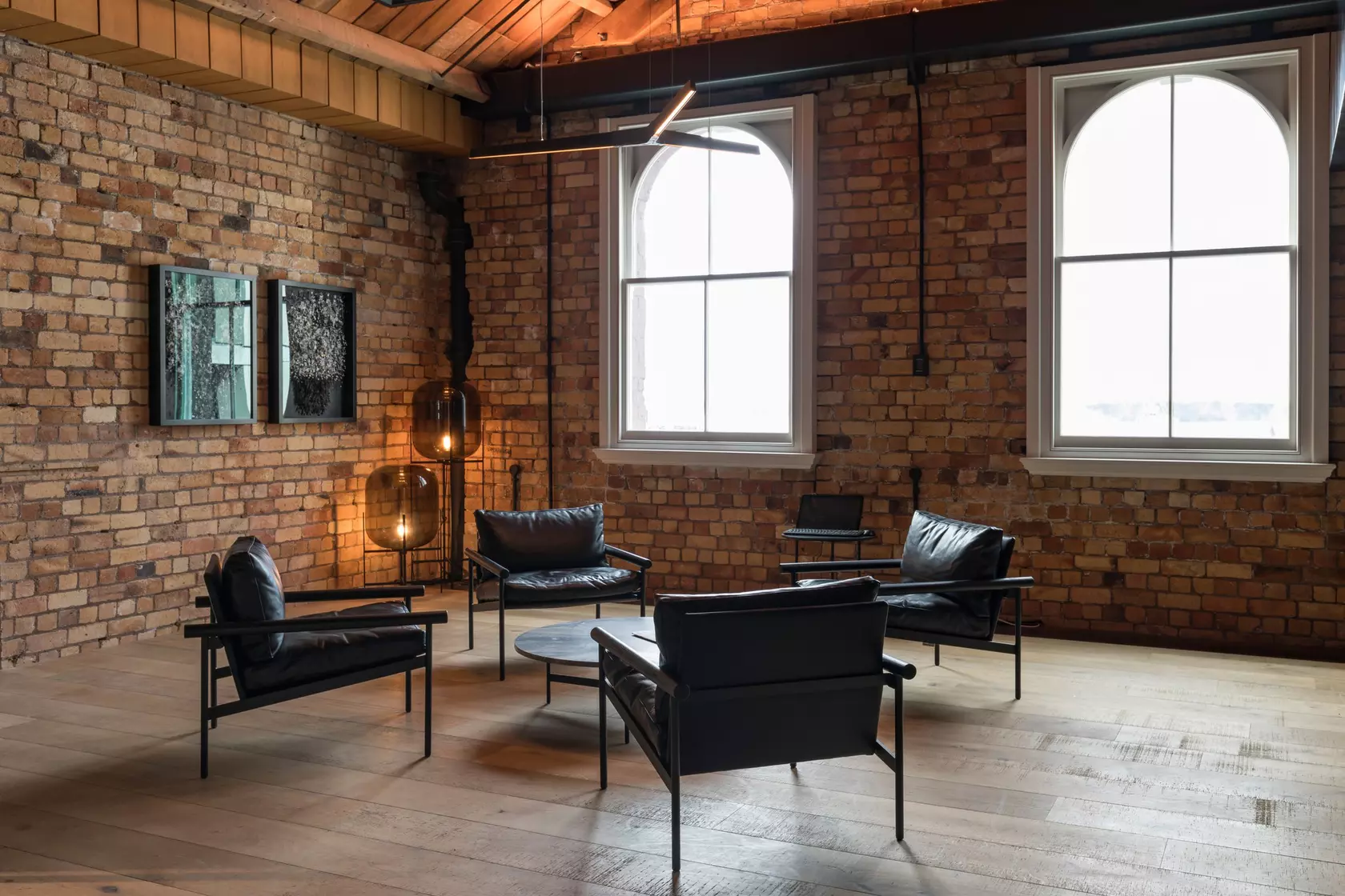 The building is edgy, industrial and filled with character, making Villa Dune's rustic and textural character the perfect fit for this space.