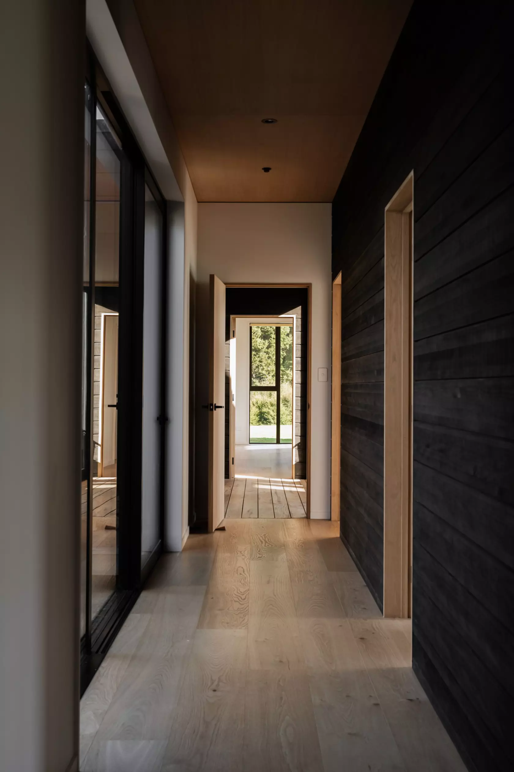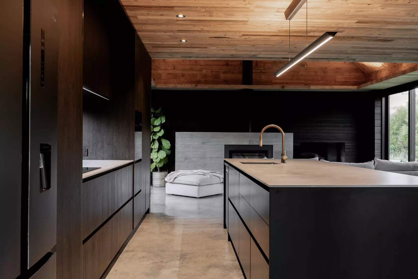 Inspired by New Zealand’s scenic landscapes and rustic timber cabins, Michael Cyra’s design emphasises simplicity and thoughtful use of materials. The home incorporates natural colours and textures, combining sturdy materials with a muted colour palette that complements the home's unique architecture.