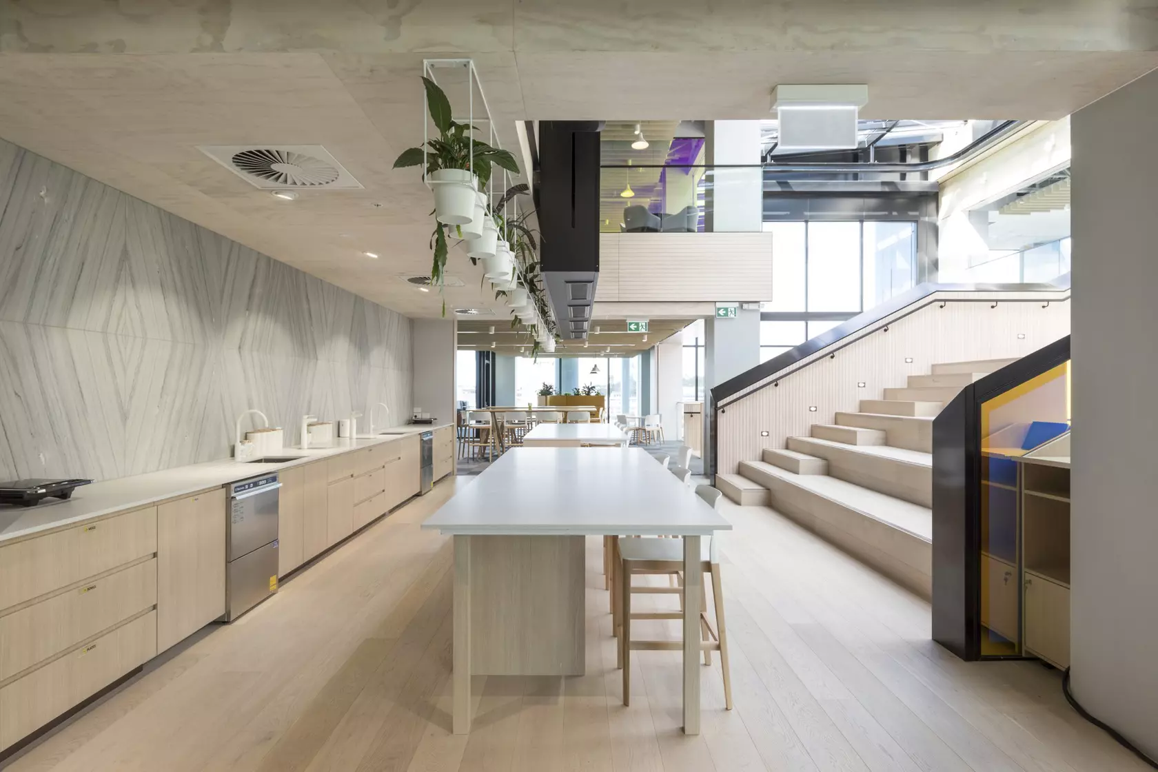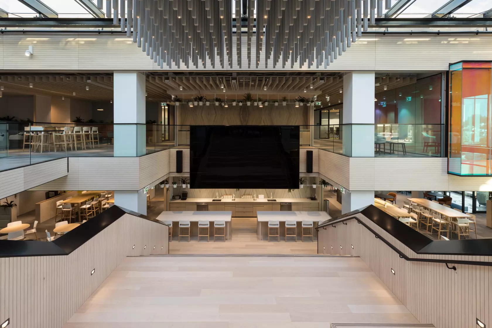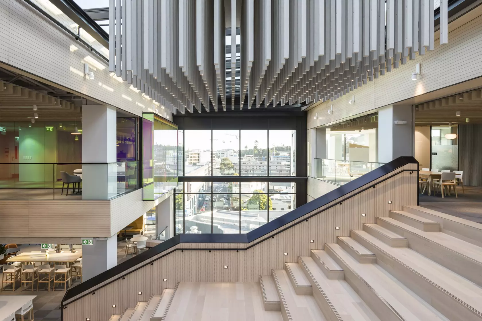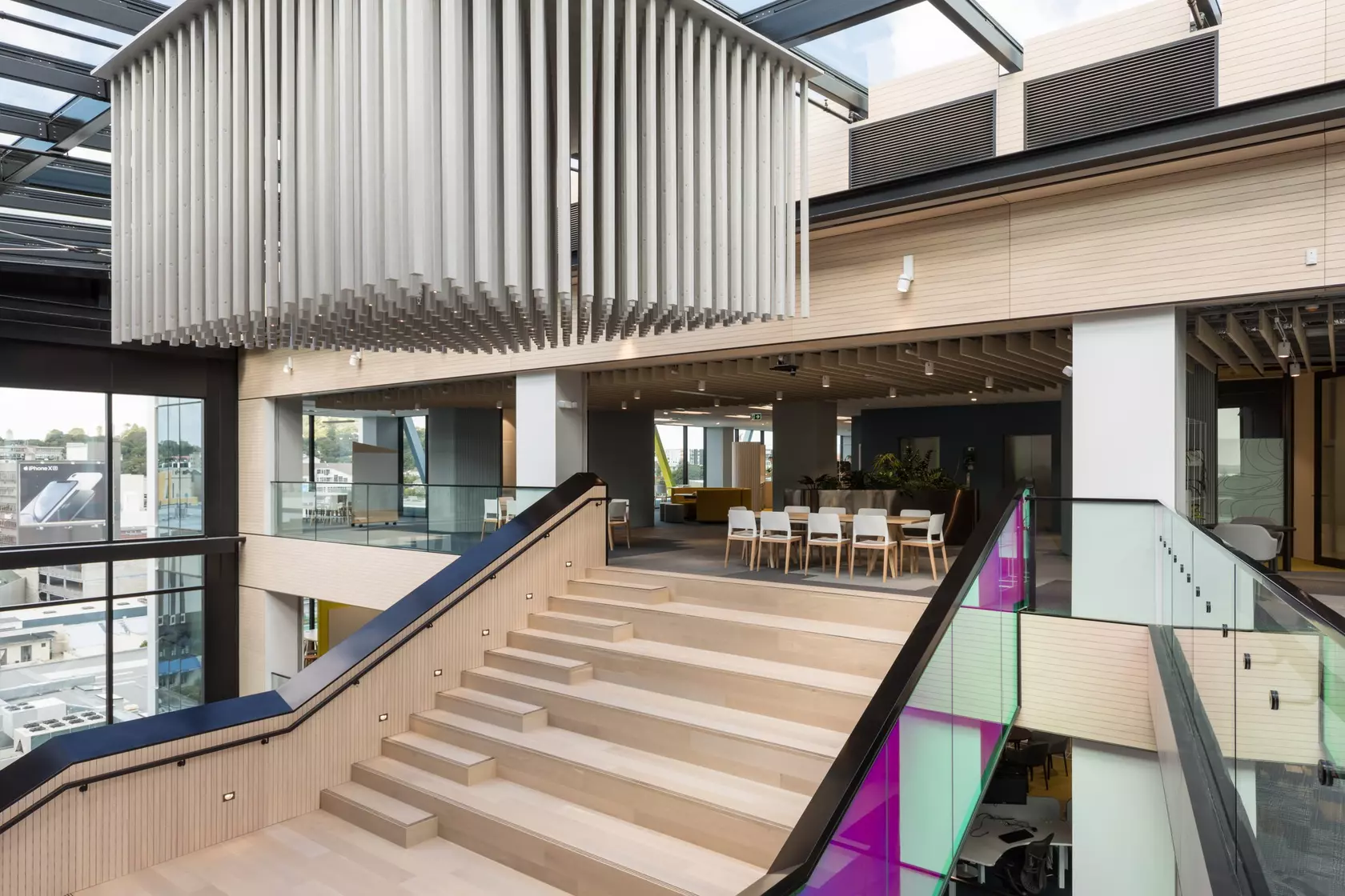 Warren and Mahoney brought Mercury Energy's geographically divided Auckland workforce together under one roof—a five-level Newmarket headquarters designed around connection and natural light. At the heart of the building, an immense atrium links all floors, with Forté's Ultra Marbled Oak flooring grounding the expansive open-plan environment. The timber's subtle grain and tone complement the building's 'Nature Mirrored' design philosophy, bringing warmth to a workspace built for collaboration, mobility, and cross-functional thinking across 550 employees.