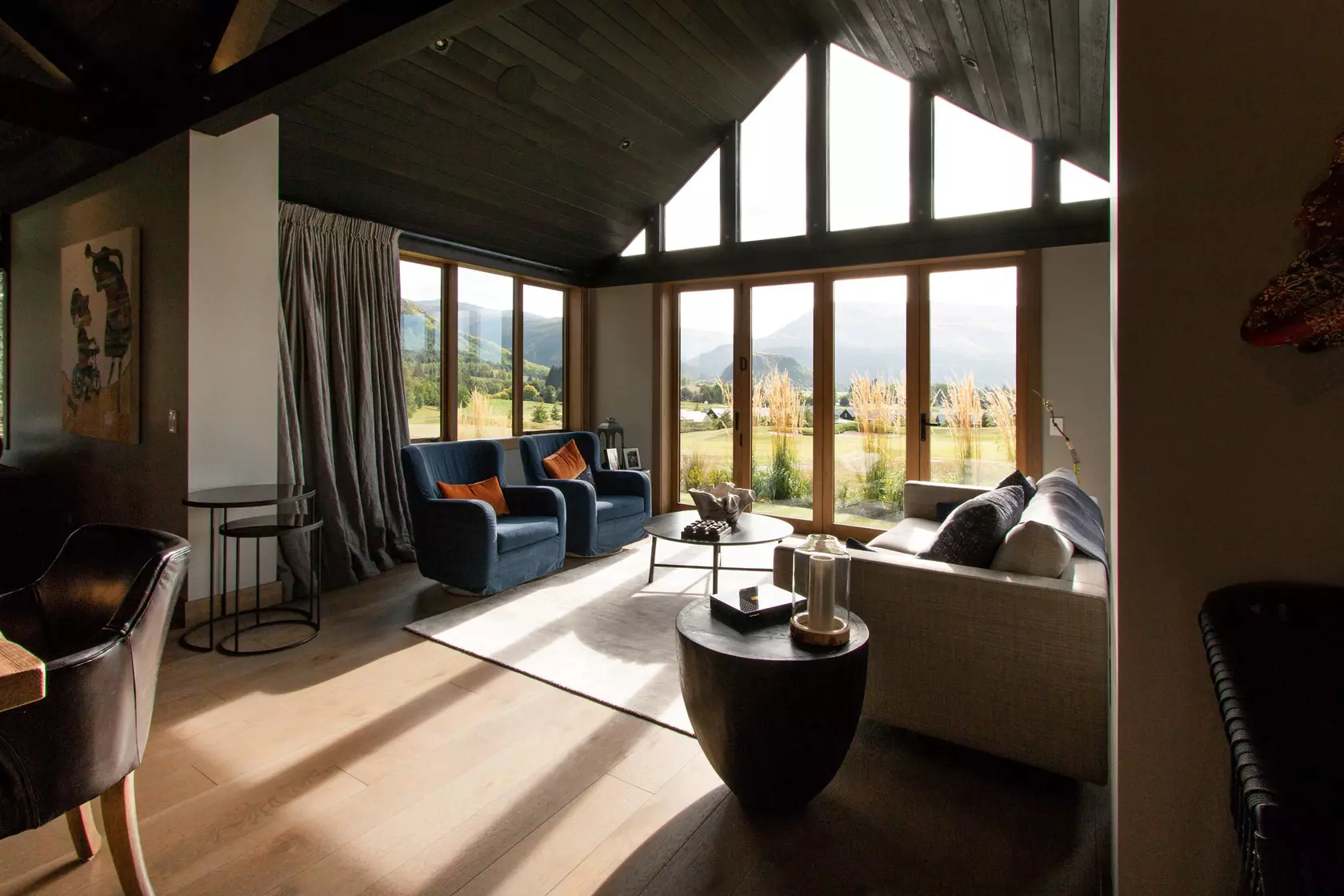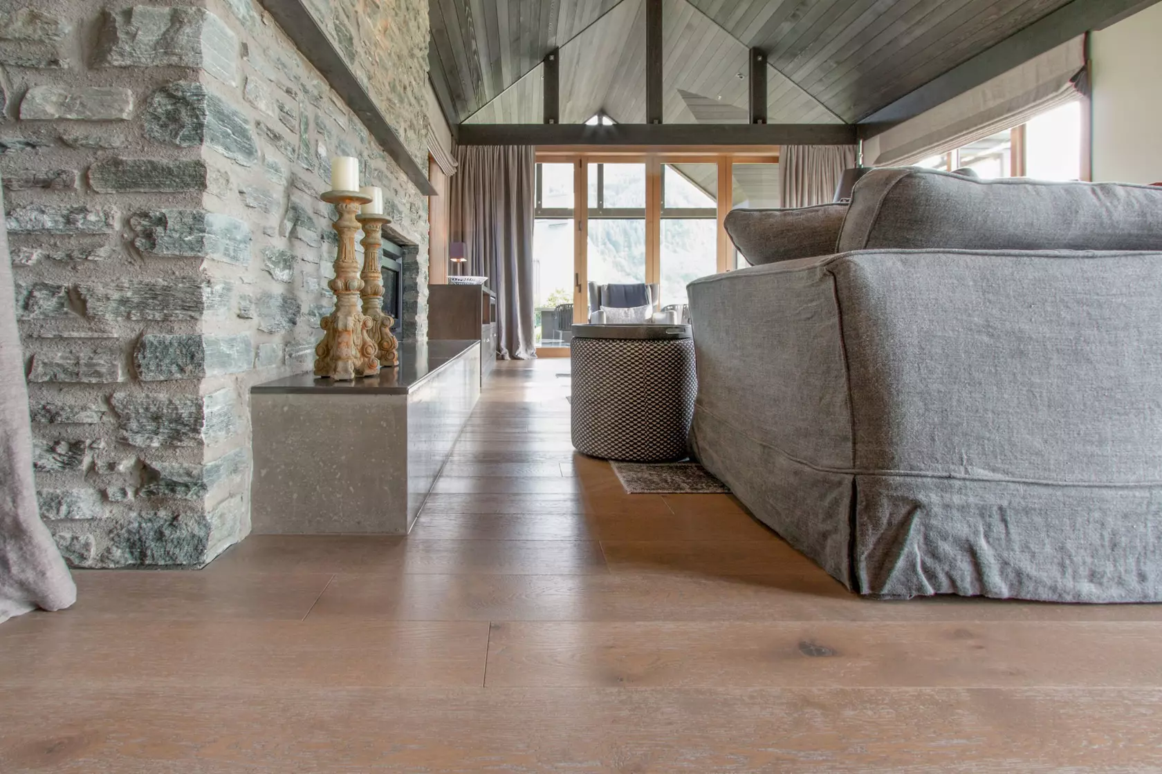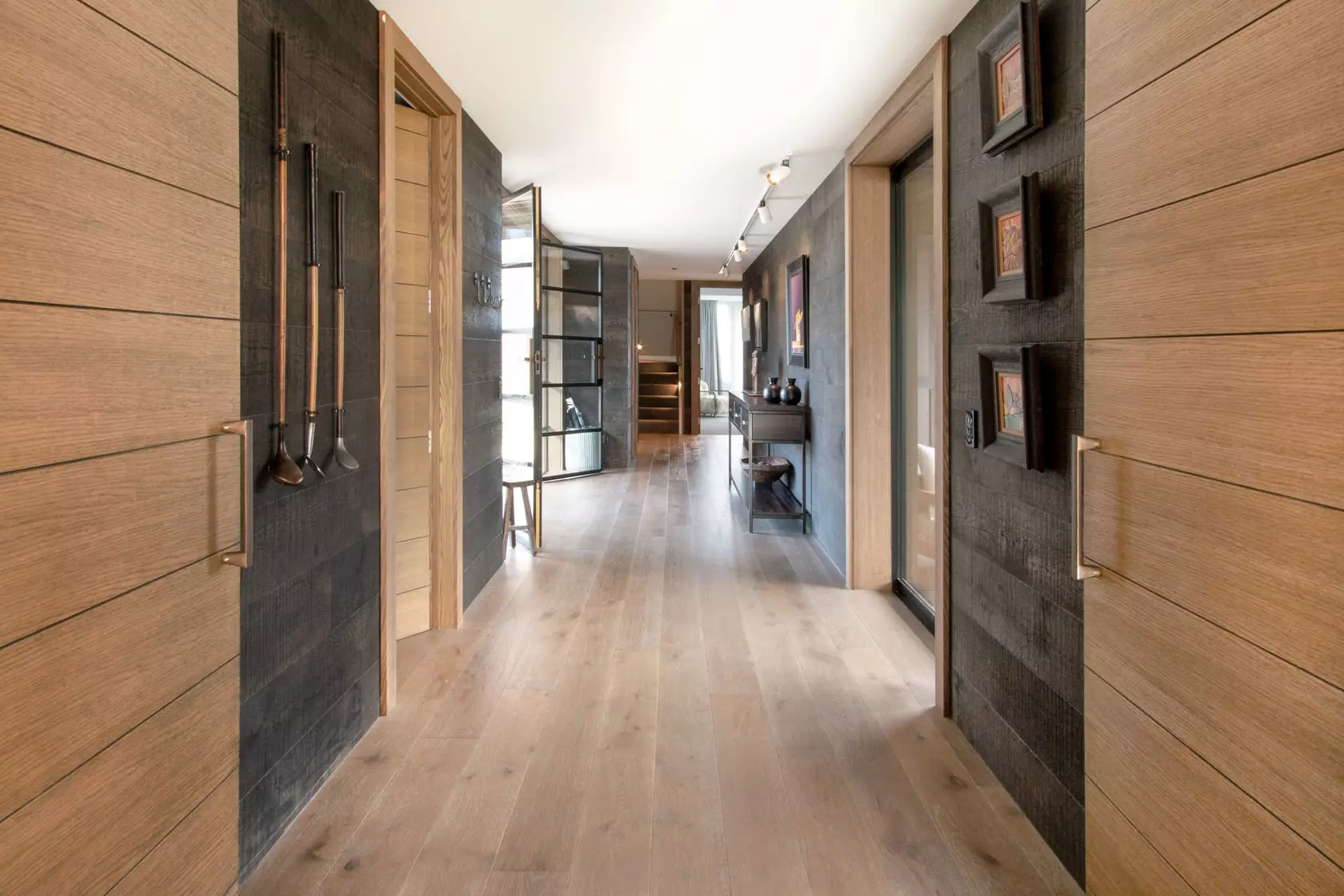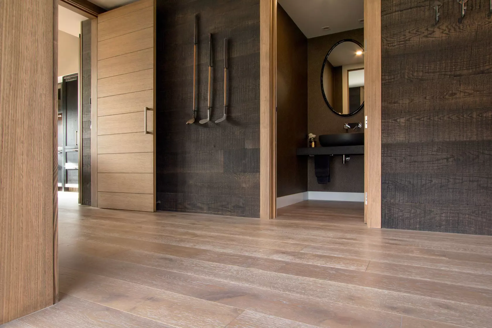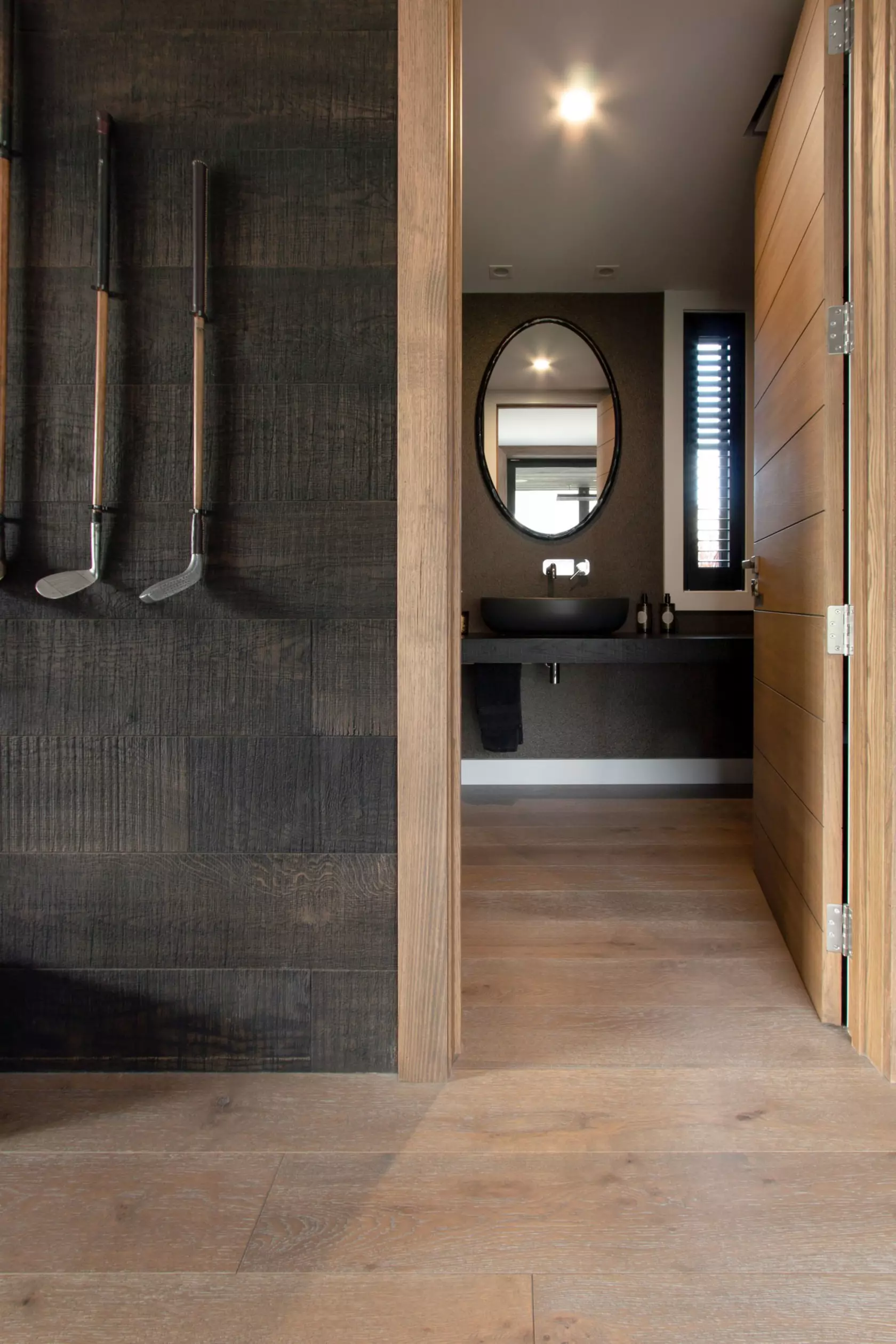 Driftwood Oak flooring provides a neutral base while Tactile Ebony wall paneling makes a statement on the walls.