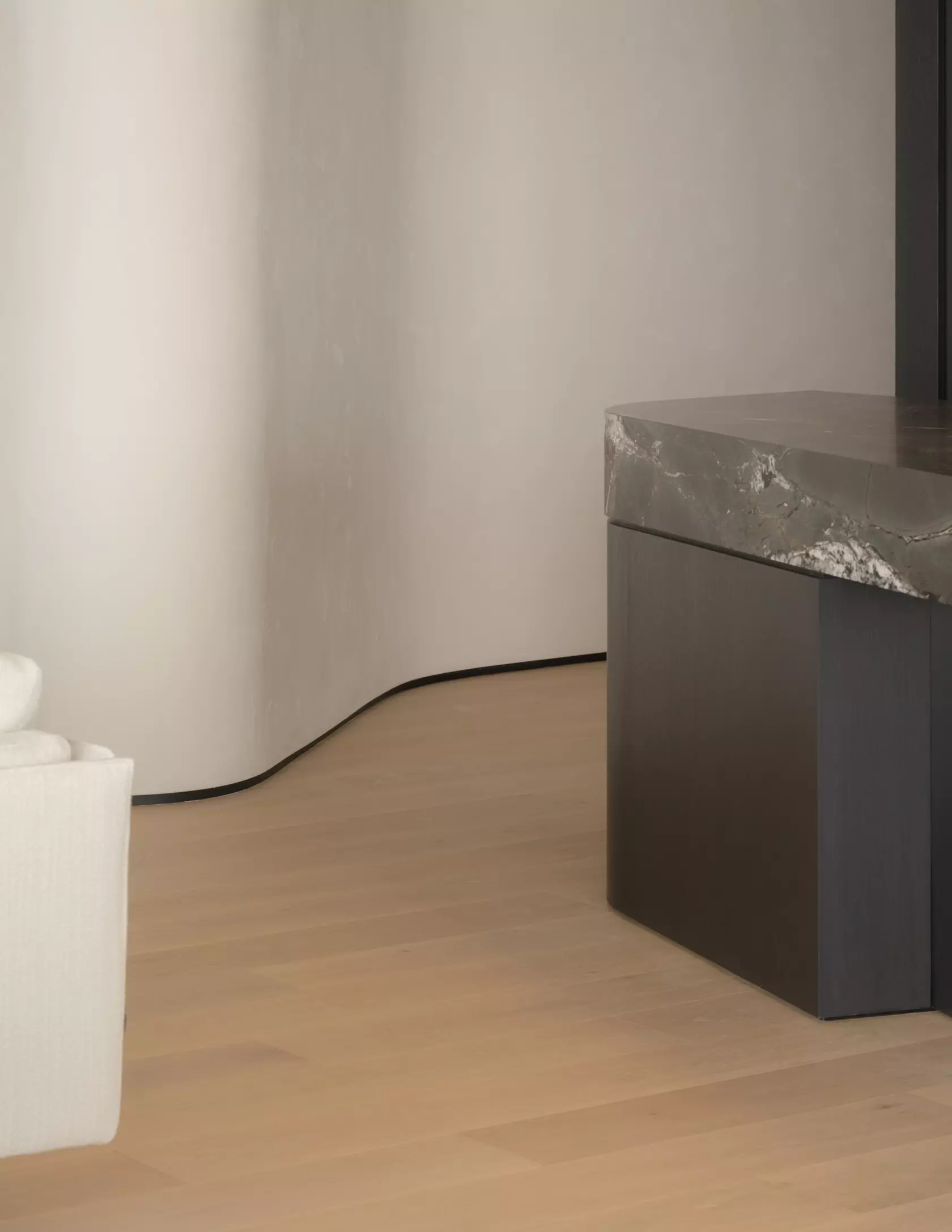 Forté flooring sets a tone of serenity and unfussy sophistication in every apartment, starting with the choice of Moda Capri for the penthouses: "We were seeking a beautiful, calm, light flooring to set off the richer tones of the timber veneer," Elvidge notes. "The wide plank and the consistency in the grain and the colour, it's formed a beautiful backdrop to these living environments."