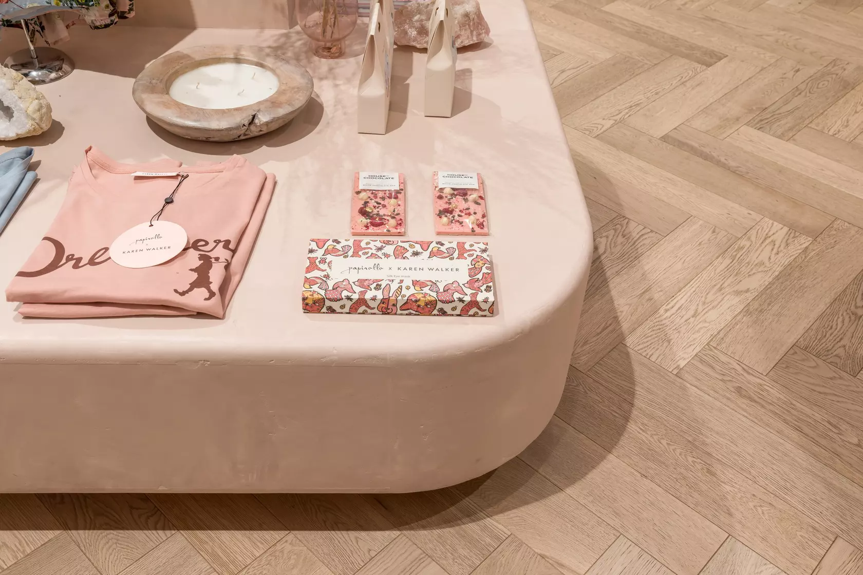 Moda Capri Herringbone brings warmth and elegance to this sleepwear store.