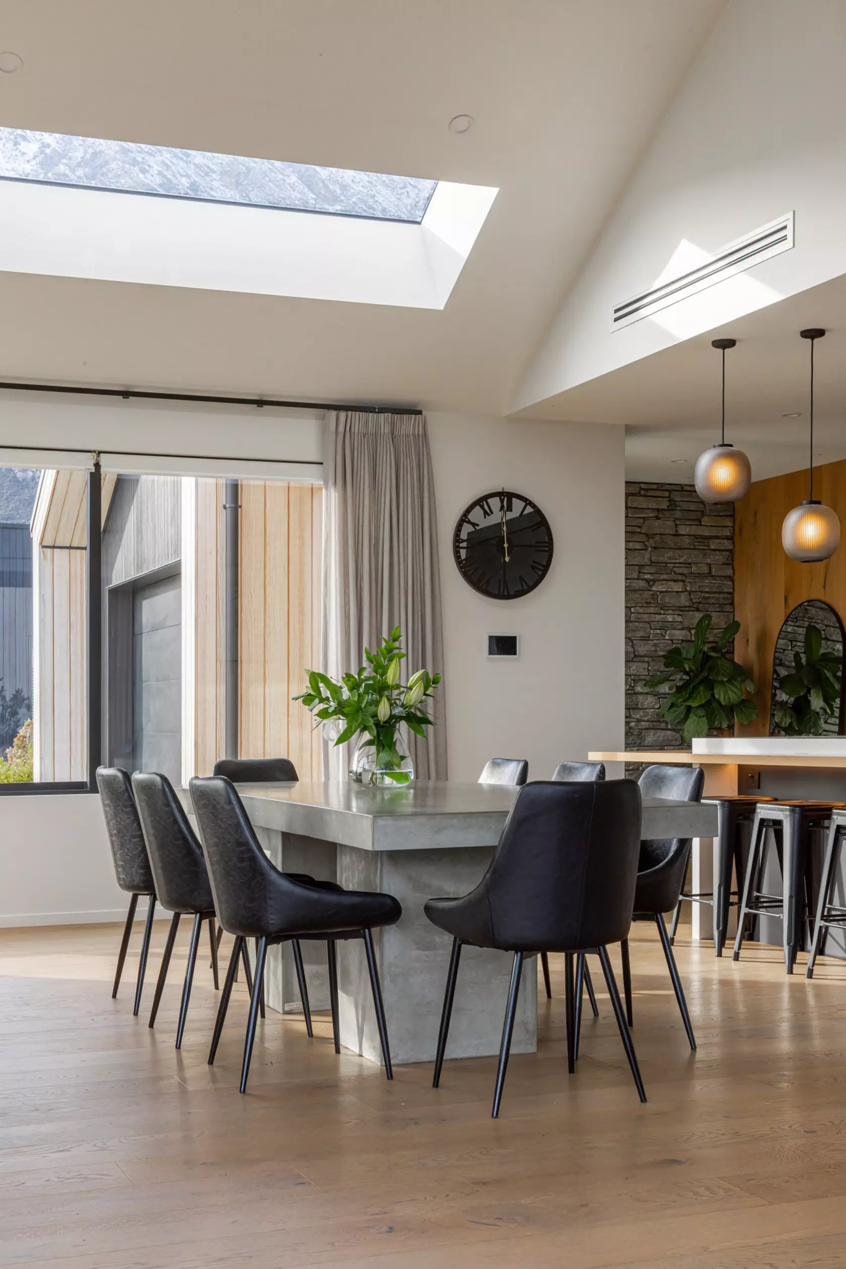Nestled at the foot of the Remarkables, this handsome home by Prime Design references its alpine setting through a mouintainesque roofline and striking schist entryway. Inside, the soft beige tones of Moda Verona bring a touch of warmth, while its brushed surface offers a raw, untouched look and feel that calls back to the home’s ruggedly beautiful surrounds.