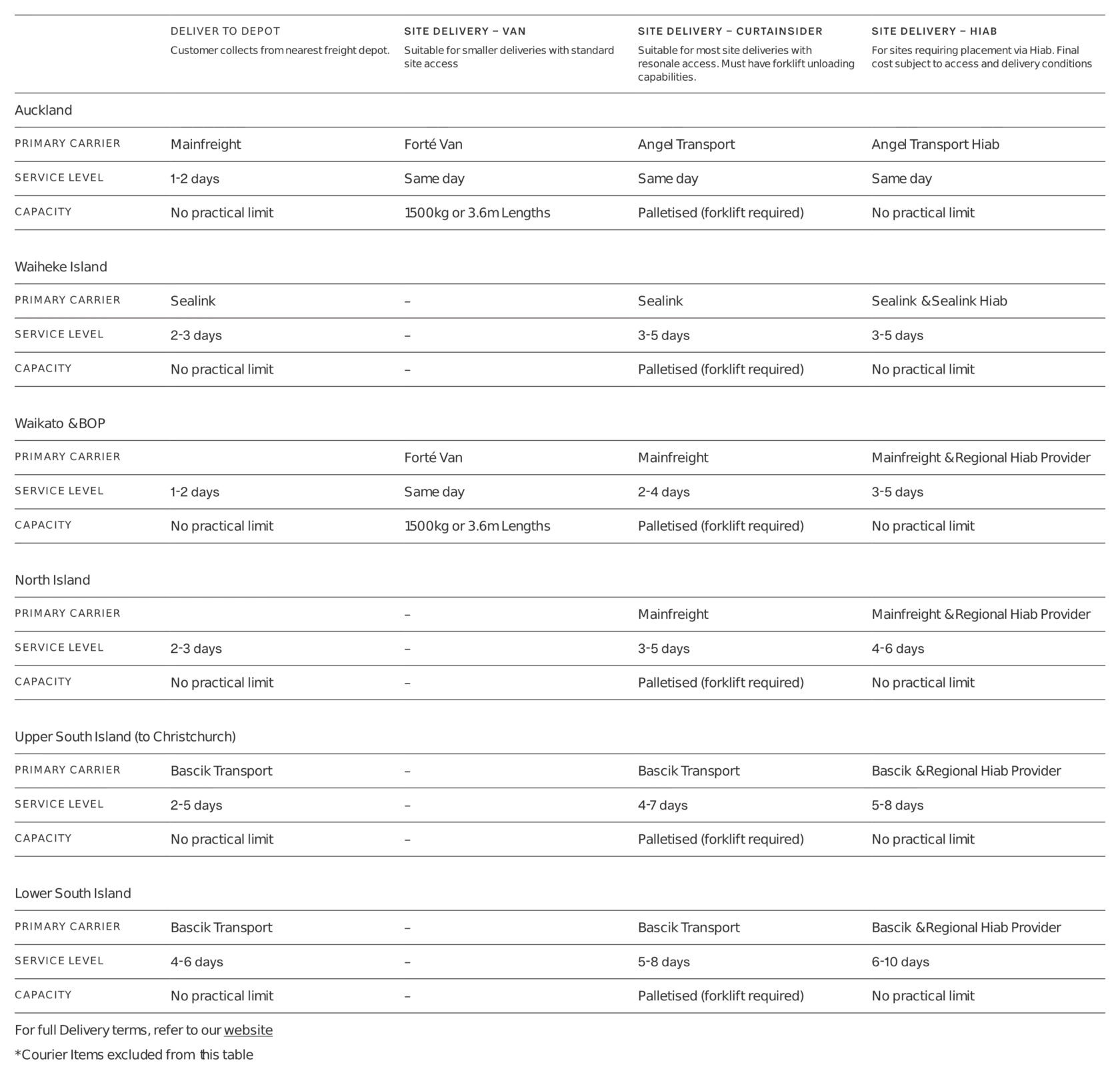 If you cannot collect from our Distribution Centre in Pukekohe, our team can liaise with our associated carriers Nationwide to deliver your order, whether that’s to the site address or a Delivery Depot nearer to you.